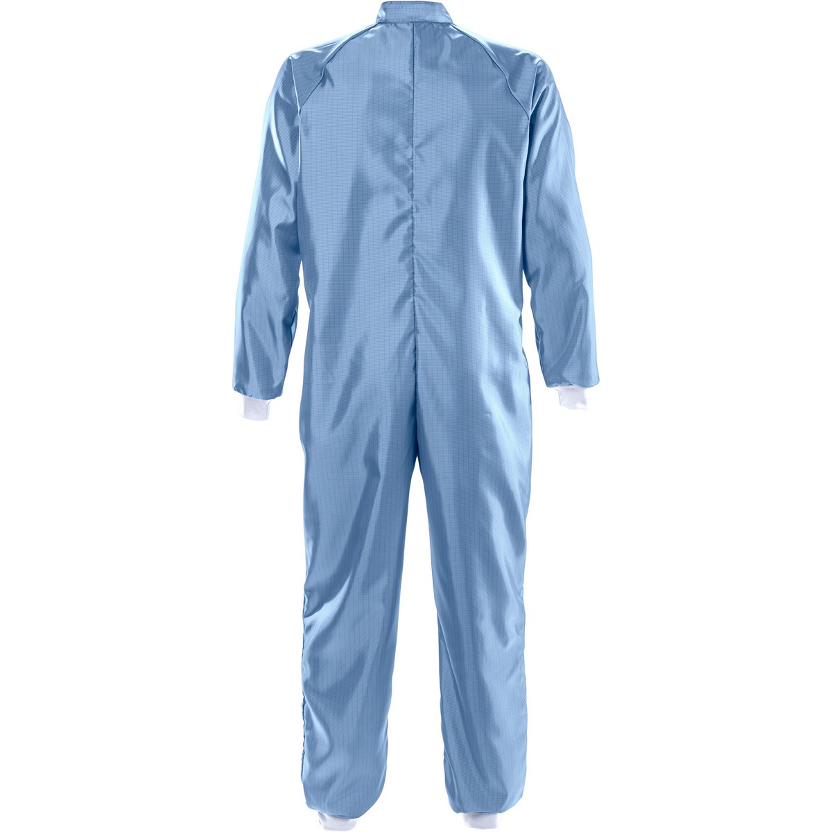 Overall som är anpassad för renrum och kontrollerade miljöer med dold dragkedja, rund hals med tryckknappar och raglanärmar för maximal rörlighet. Ribbmudd i ärm och ben, bound seam och ISO klass 3 - OEKO-TEX®-certifierad.Egenskaper:Färg: Isblå (F500)Material: 97% polyester, 3% konduktiva fibrer.Vikt: 115 g/m².Koncept: DynamicSäsonger: Året runt.