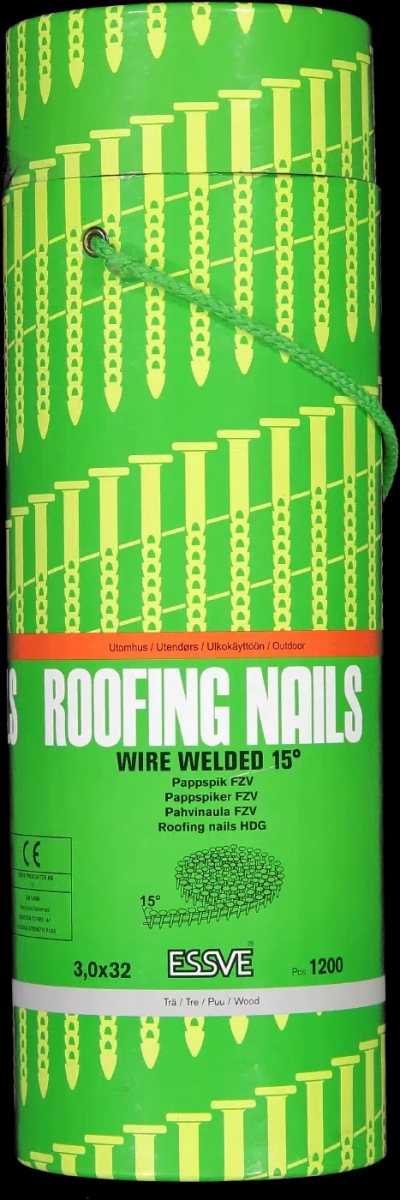 Takpappspik 15° Essve 3,0x32. 1200 st. Takpappspik 15° Essve 3,0x32. 1200 st är en. Varmförzinkad rundbandad pappspik 15-gradig.