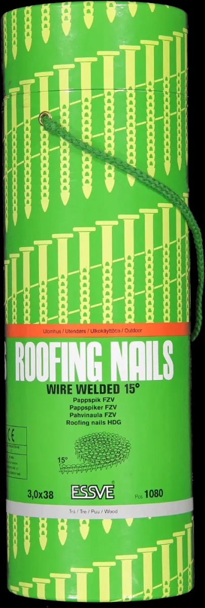 Takpappspik 15° Essve. 3,0x38.1080 st. Utvecklad för effektiv infästning med bra grepp och konsekvent resultat. Passar både bygg och snickeri.