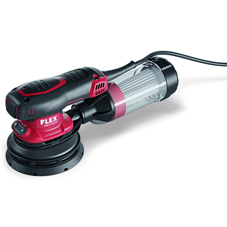 Excenterslip ORE2-125 EC från Flex. Ger jämn avverkning och bra kontroll från grovbearbetning till finish. Ger jämn yta och stabil kontroll genom hela arbetsmomentet. Vanlig vid trä mot trä-konstruktioner.