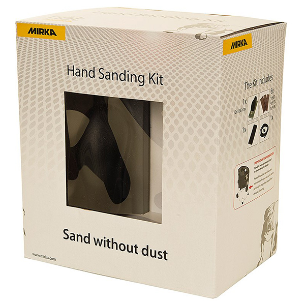 Mirka Startkit handslipning 70x198 mm ink. dammslang & tillbehör. Slipkloss. Kit innehåller ett ergonomiskt handslipsblock och fem nätslipningsremsor. Abranet har mycket längre livslängd än ett traditionellt slippapper.