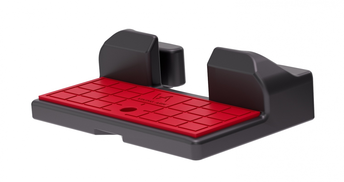 Viking Arm gummerade basplatta som träs på basgafflarna ger ett bättre bredare stöd och säkert grepp och fäste mot underlaget. Bottenplattans dimension är 115,6 mm x 102,7 mm x 17,6 mm. Passar verkstad och industri där snabb lyftkapacitet och trygg manövrering är viktiga. Fungerar bra i både nyproduktion och renovering.