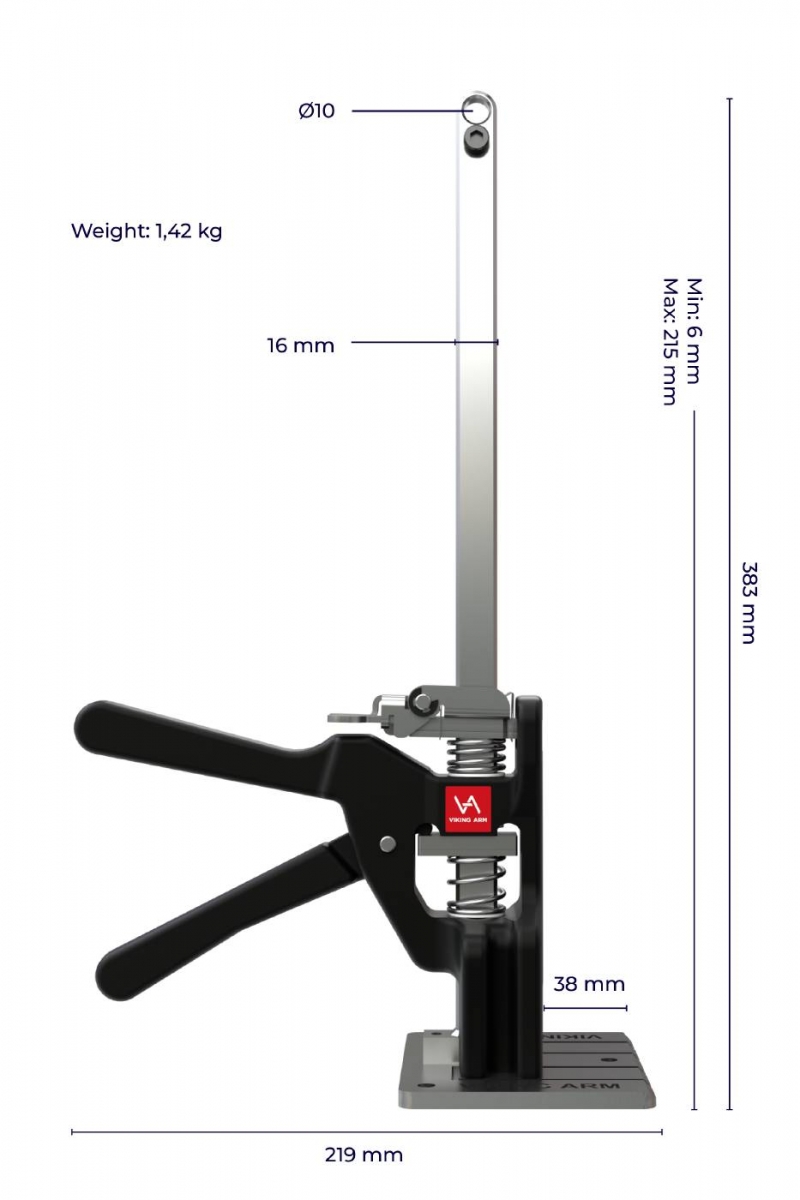 Viking Arm är ett patenterat kraftigt lyft och spännverktyg med enhandsgrepp som lyfter 150 kg upp till 21,5 cm och är din hjälpande hand som du justerar med millimeter precision vid tex montering av dörrar, fönster. Ger säker hantering av tunga laster med stabilt grepp och effektiv arbetsgång. Ett tryggt val vid byggprojekt där tempo krävs.