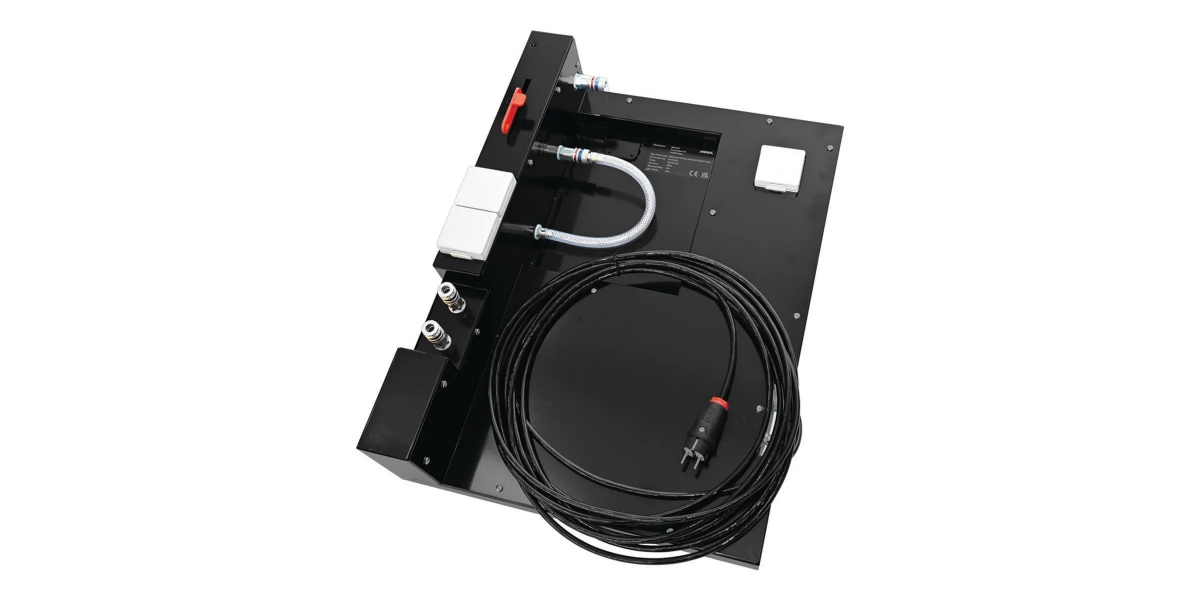 En mittsektion utrustad med både elektriska och pneumatiska anslutningar för deras Modular Trolley-system. Den gör att du kan ansluta både elverktyg och tryckluftsverktyg direkt på vagnen, vilket minskar spring, kabelkaos och allmänt vardagsmummel i verkstaden.
