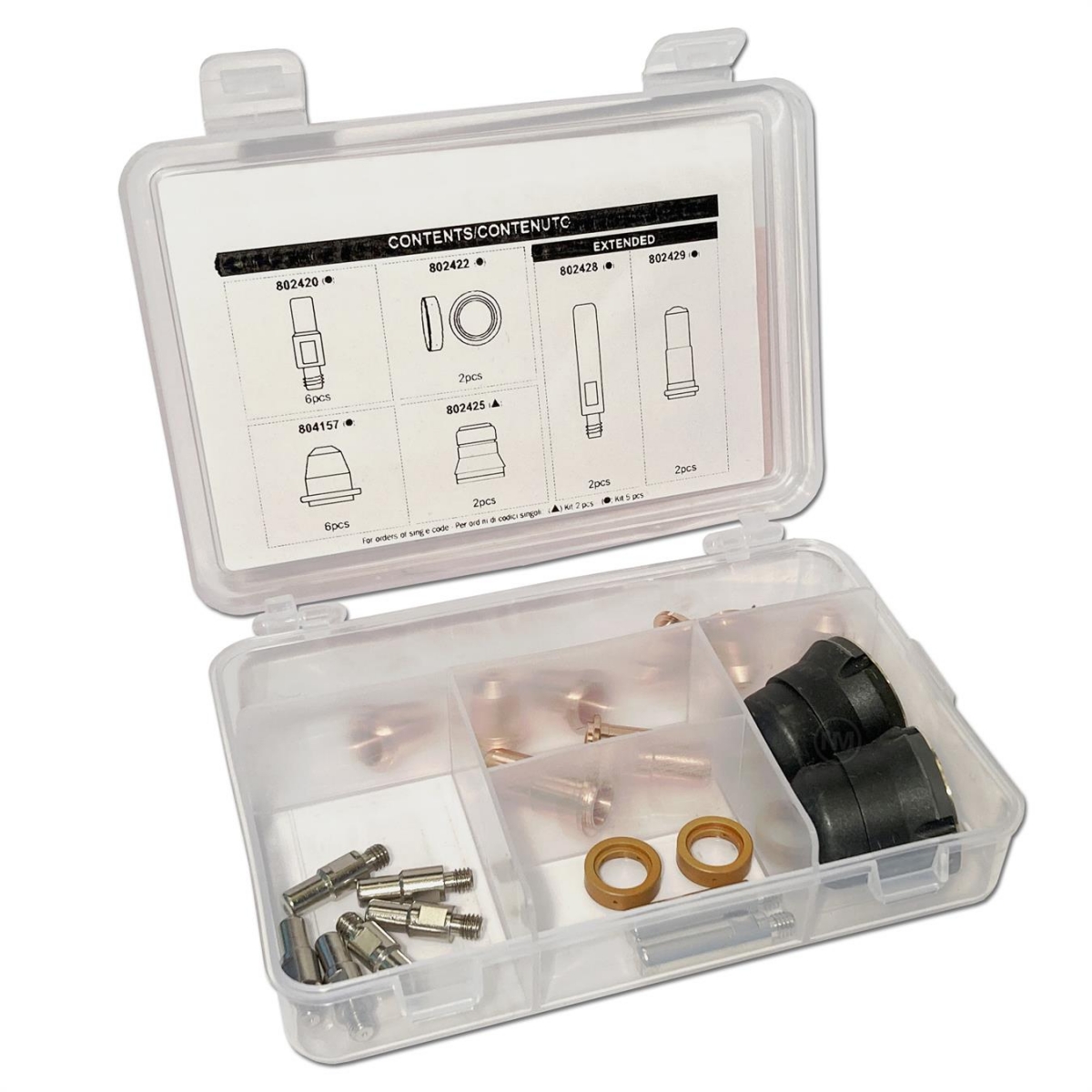 Förbrukningslåda Plasma 60 XT Reservdelskit. Från Näsström Maskin. Består av:6st Elektroder - 8024202st Isolator - 8024226st Dysa - 8021572st Gaskåpa - 8024252st Ekektrod lång - 8024282st Dysa lång - 802429.